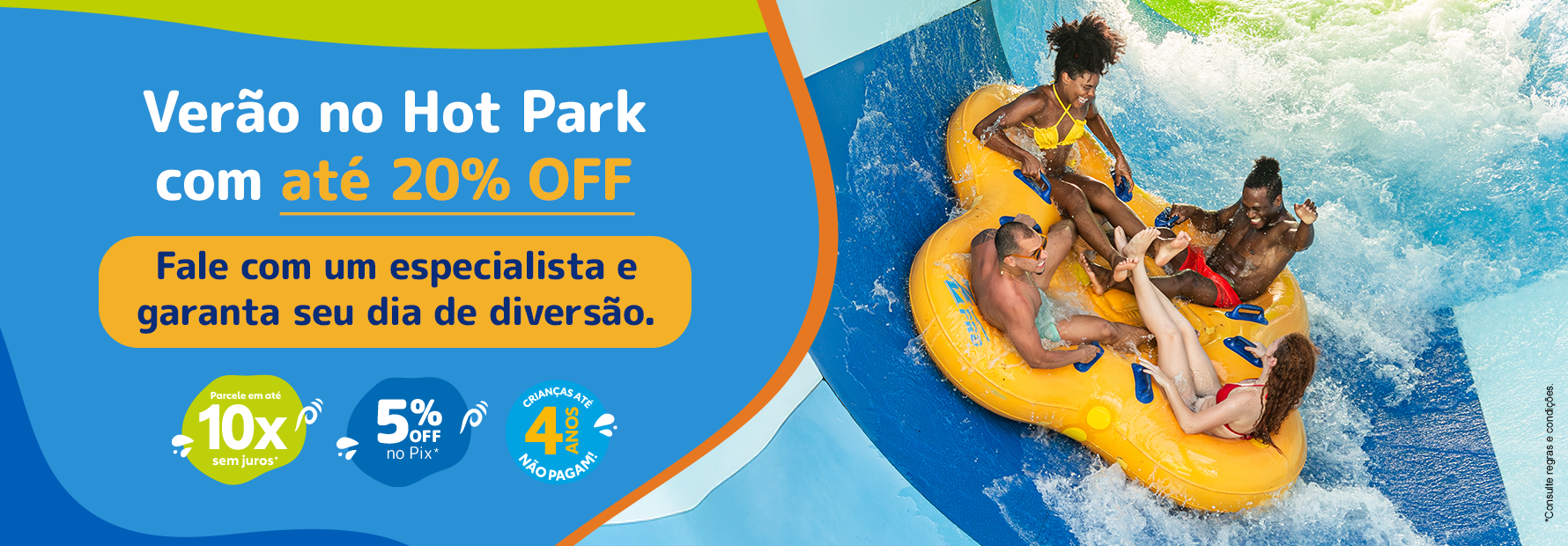 Os ingressos vendidos online chegam a ser 44% mais baratos para crianças e 31% para adultos durante todo o ano. Além disso, você pode aproveitar as promoções e pacotes do Hot Park para economizar ainda mais.