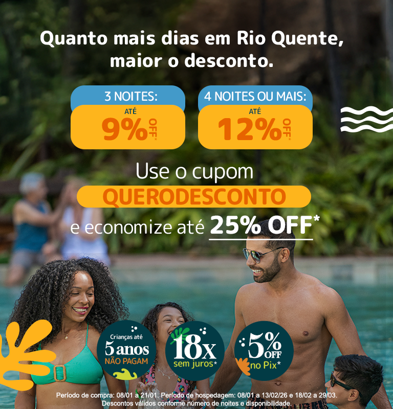 São seis hotéis diferentes com fontes de águas quente e uma praia incrível no meio do cerrado e com muitas atrações para você curtir e recarregar as energias.