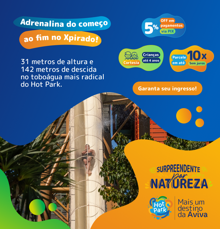 Além de tudo isso, você ainda encontra o Birdland, um viveiro com mais de 200 aves de espécies diferentes, o Xpirado, para quem curte aquele passeio de terror, e as quatro quadras de areia para praticar qualquer esporte. As possibilidades de diversão no Hot Park são infinitas!