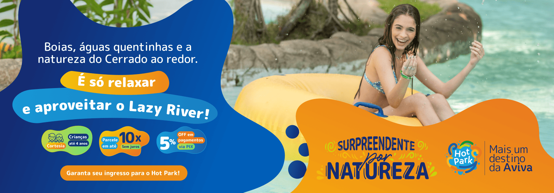 Agora, se você quiser relaxar nas águas quentinhas, vai adorar a Escola de Surf, o Passeio de Caiaque, a Praia do Cerrado, o Lazy River e, claro, aquele Mergulho inesquecível em meio a mais belíssima flora aquática.