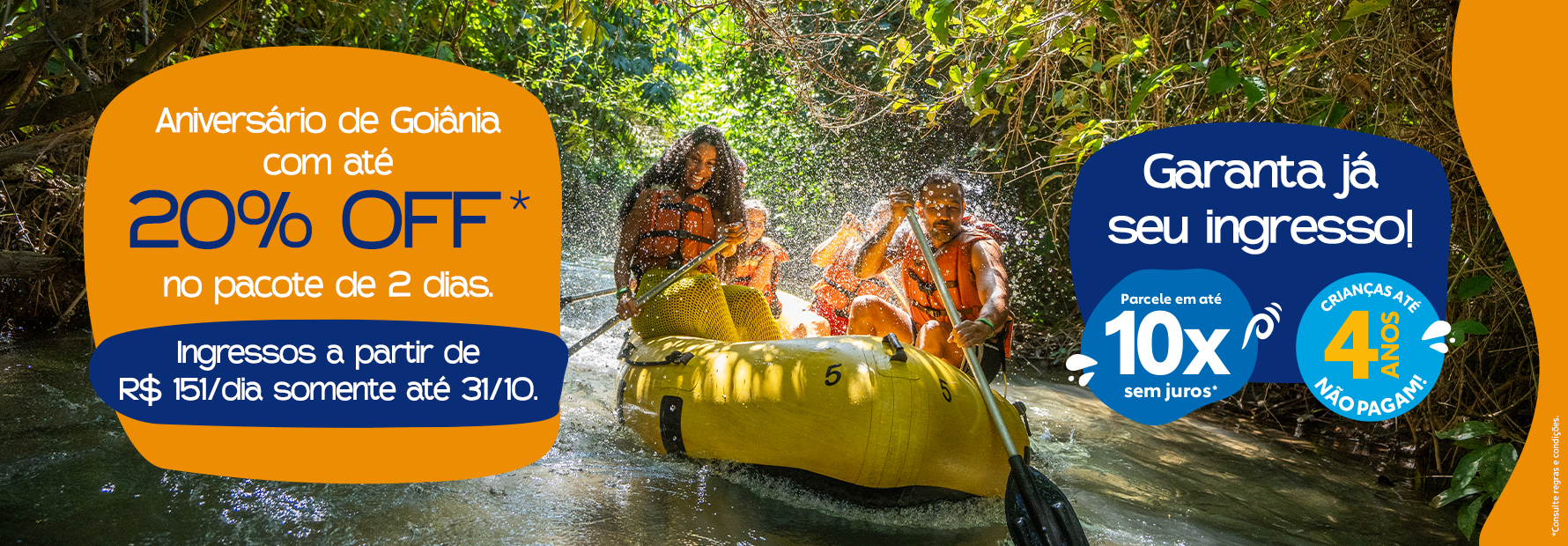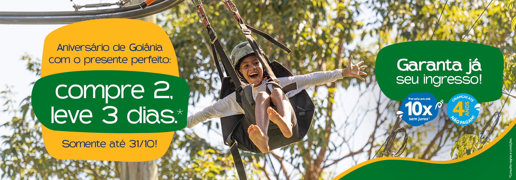 Dentre as inúmeras facilidades, você pode parcelar seu ingresso para o Hot Park em até dez vezes sem juros* e crianças até quatro anos não pagam.