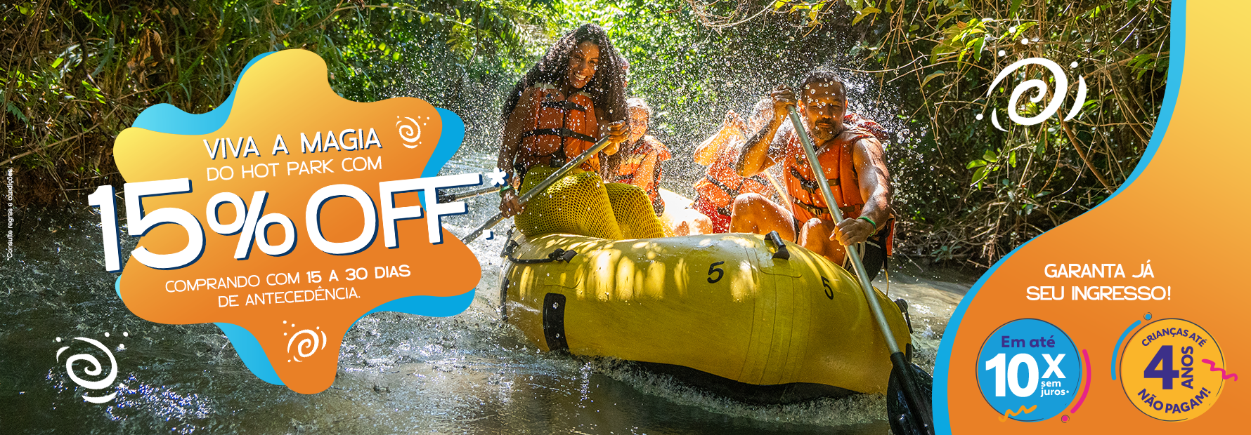 Dentre as inúmeras facilidades, você pode parcelar seu ingresso para o Hot Park em até dez vezes sem juros* e crianças até quatro anos não pagam.