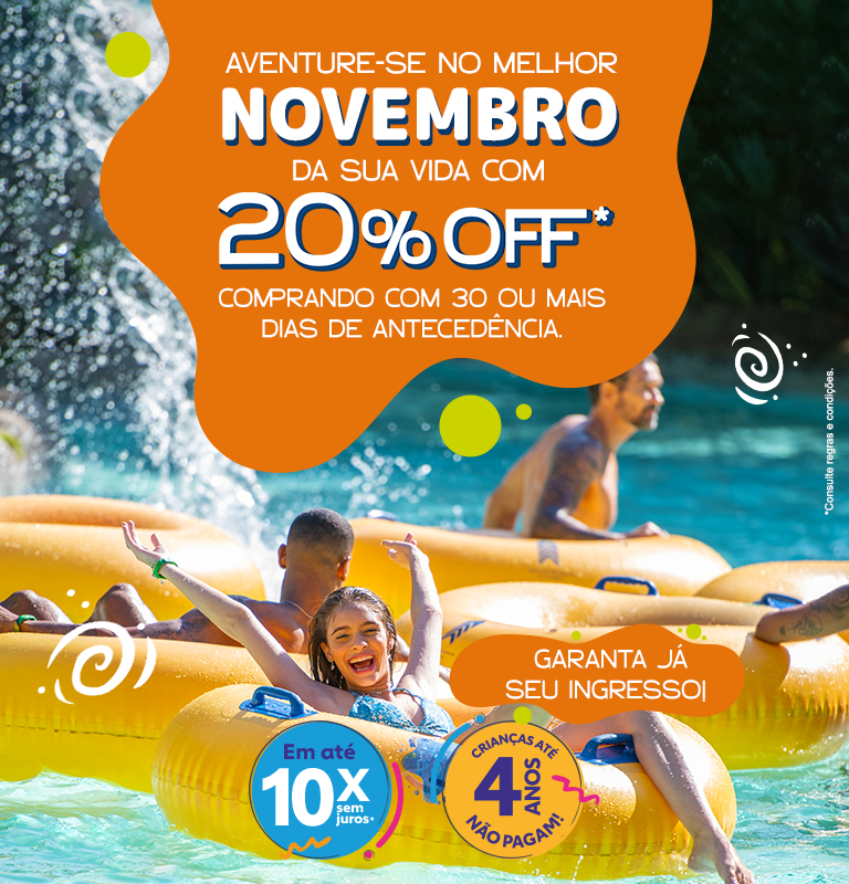 Os ingressos vendidos online chegam a ser 44% mais baratos para crianças e 31% para adultos durante todo o ano. Além disso, você pode aproveitar as promoções e pacotes do Hot Park para economizar ainda mais.
